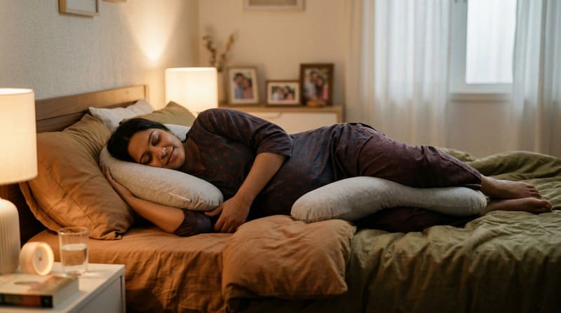 - Pillows are Your Best Friends: Try placing a pillow between your knees to align your hips, under your belly for extra support, and behind your back to prevent rolling onto your back.