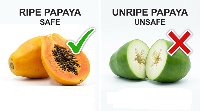 While ripe papaya is generally safe and beneficial, unripe papaya can pose risks due to its latex content, potentially triggering contractions. Ripe papaya boasts digestive enzymes and essential nutrients, aiding digestion and supporting maternal health.