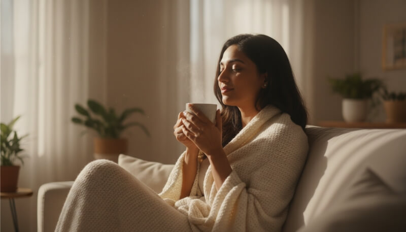 Real self-care for new moms is rarely the curated bath bomb scenes you see online. It is small, often invisible, and fits into the cracks of your day. Try a hot shower without rushing, drink a full glass of water before checking your phone, sit outside for 5 minutes of sunlight, do a 4-7-8 breathing exercise, listen to one favourite song with no other input, do gentle neck rolls, apply lotion mindfully, journal one sentence about your day, text a friend instead of scrolling, eat a small piece of dark chocolate slowly, stretch your arms over your head, brush your hair properly, wash your face with cool water, light a candle while feeding, or simply sit in silence for 2 minutes. None of these need a babysitter or extra money.